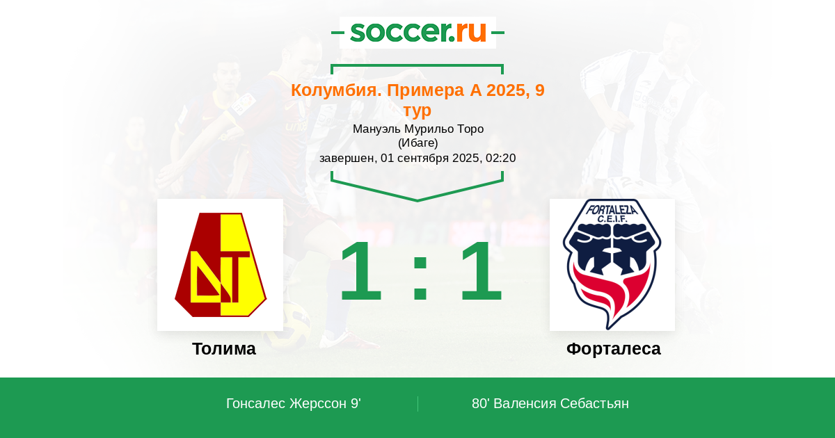 Толима - Форталеса: обзор матча 1 сентября 2025
