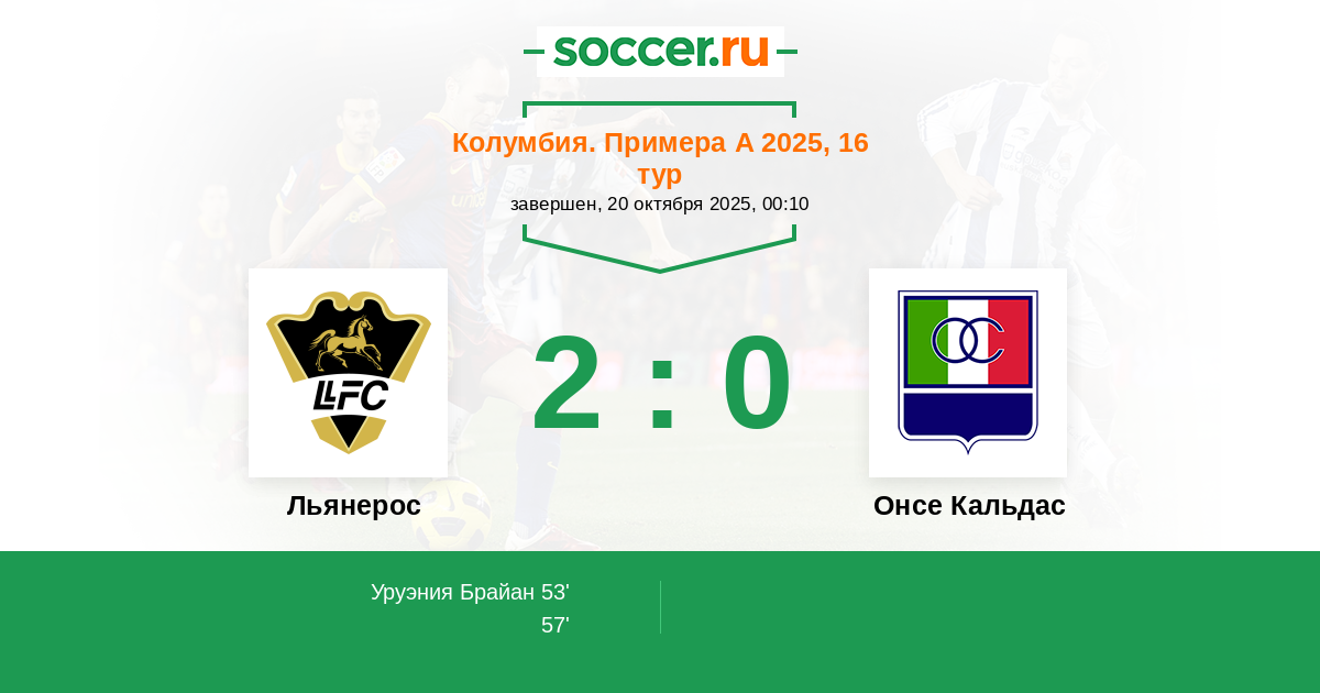 Льянерос - Онсе Кальдас: обзор матча 20 октября 2025