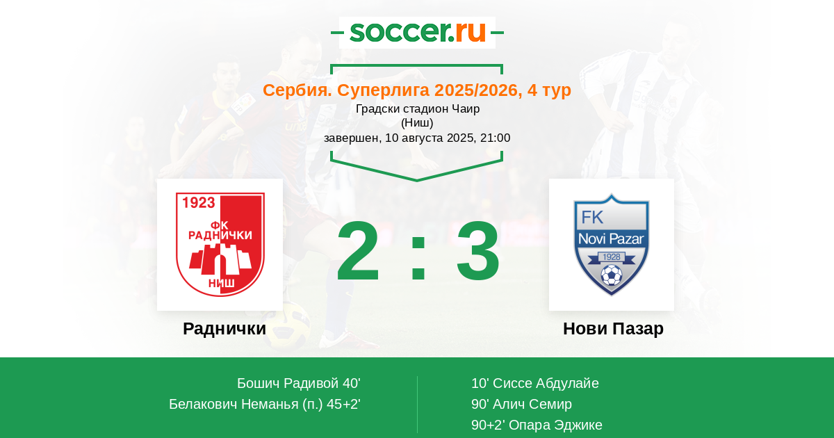 Раднички - Нови Пазар: обзор матча 10 августа 2025