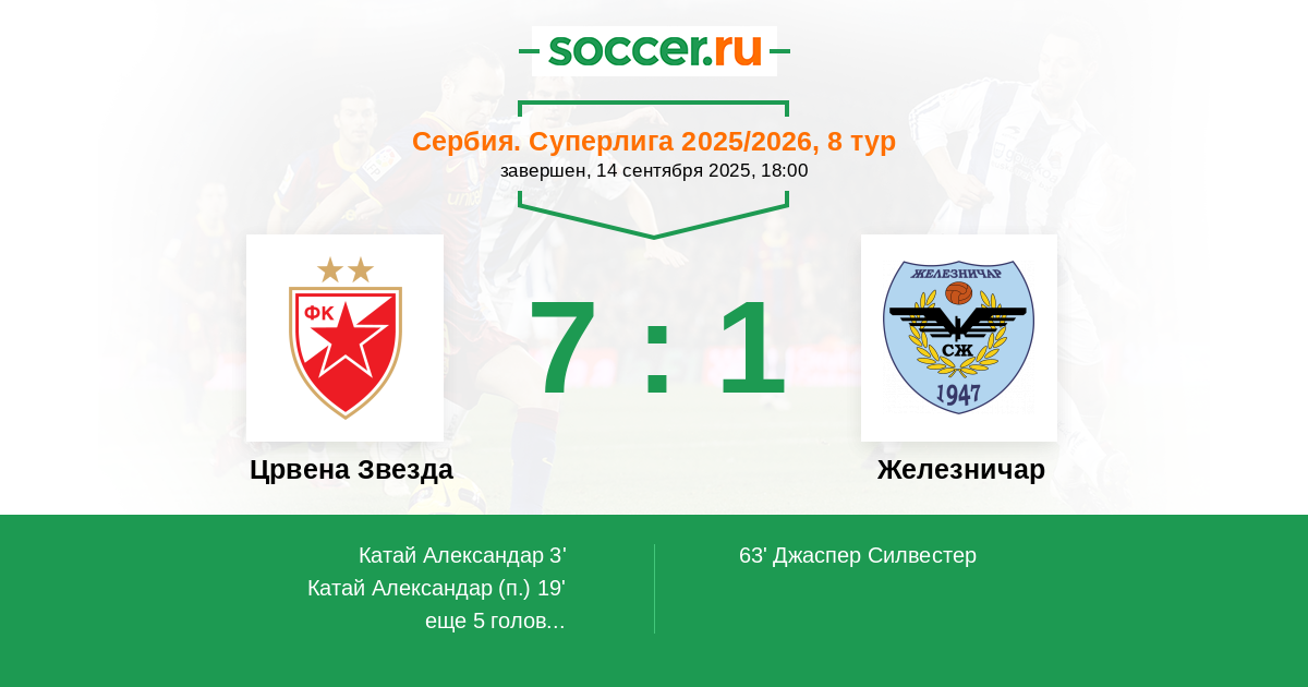 Црвена Звезда - Железничар: обзор матча 14 сентября 2025