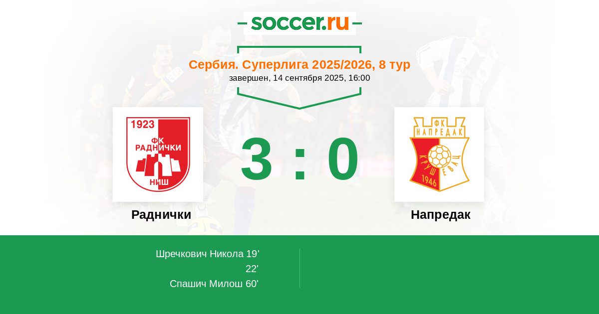 Раднички - Напредак: обзор матча 14 сентября 2025