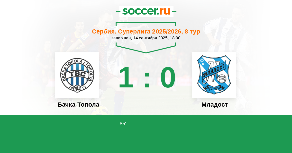 Бачка-Топола - Младост: обзор матча 14 сентября 2025