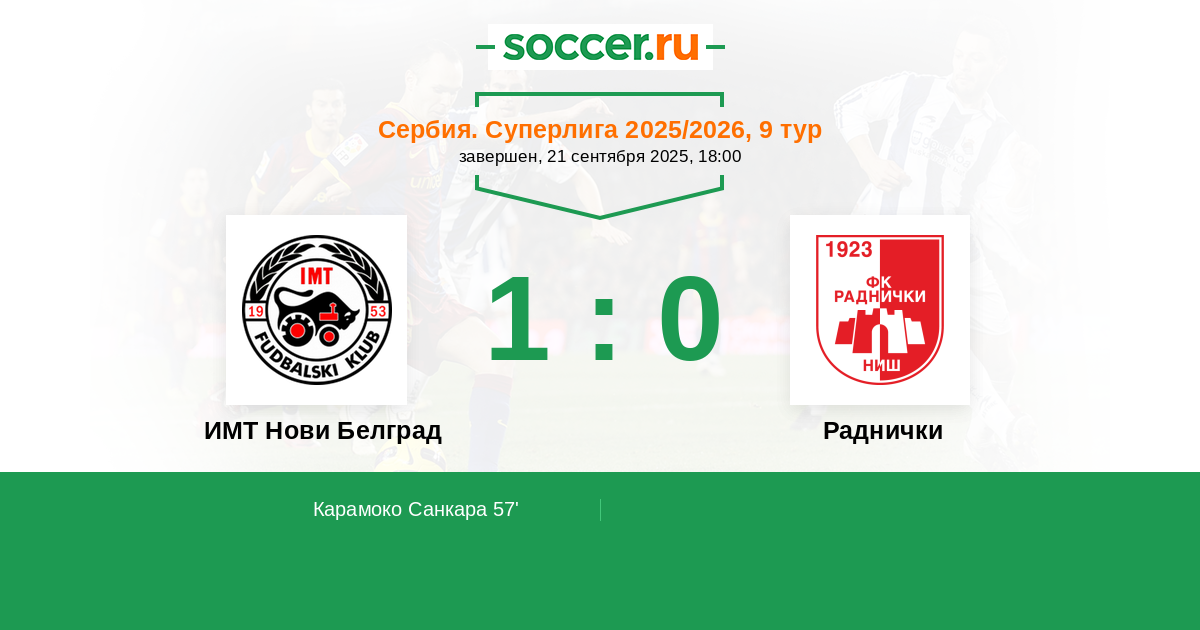 ИМТ Нови Белград - Раднички: обзор матча 21 сентября 2025