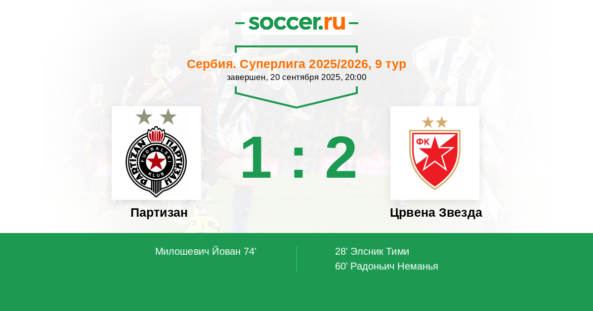 Партизан - Црвена Звезда: обзор матча 20 сентября 2025