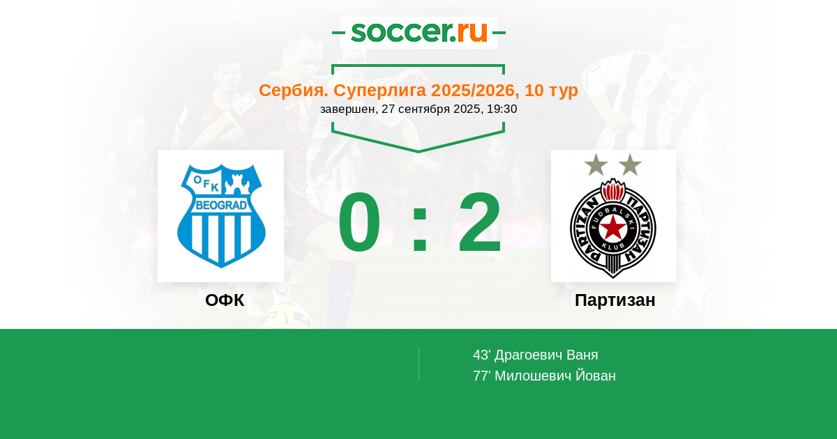 ОФК - Партизан: обзор матча 27 сентября 2025