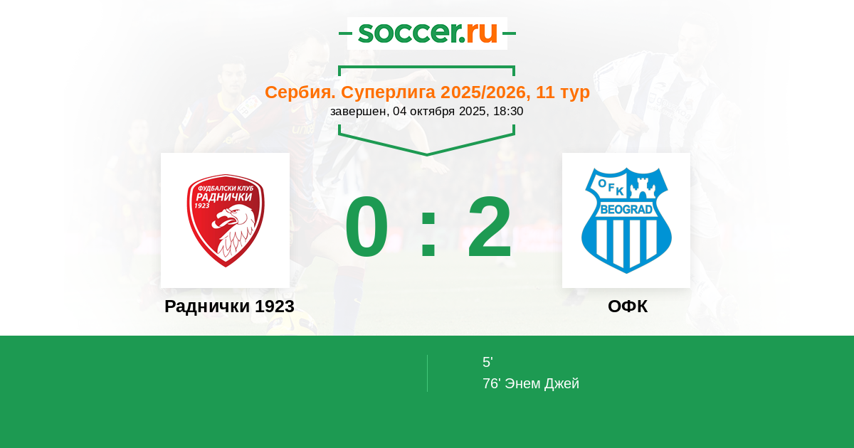 Раднички 1923 - ОФК: обзор матча 4 октября 2025