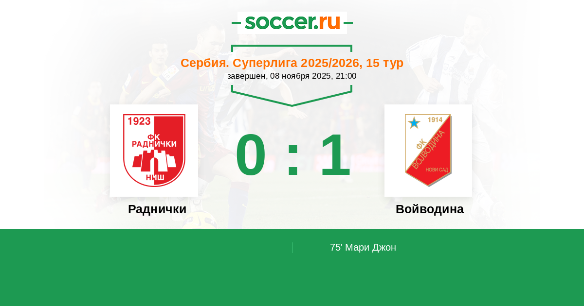 Раднички - Войводина: обзор матча 8 ноября 2025