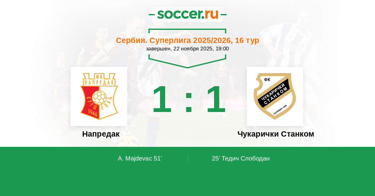 Напредак - Чукарички Станком: обзор матча 22 ноября 2025