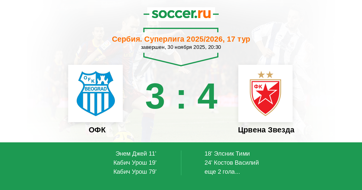 ОФК - Црвена Звезда: обзор матча 30 ноября 2025