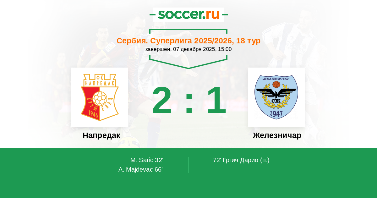 Напредак - Железничар: обзор матча 7 декабря 2025