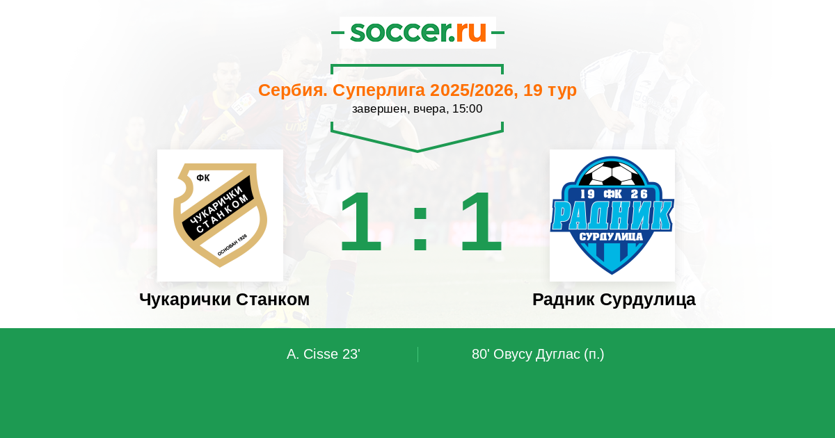 Чукарички Станком - Радник Сурдулица: обзор матча 13 декабря 2025