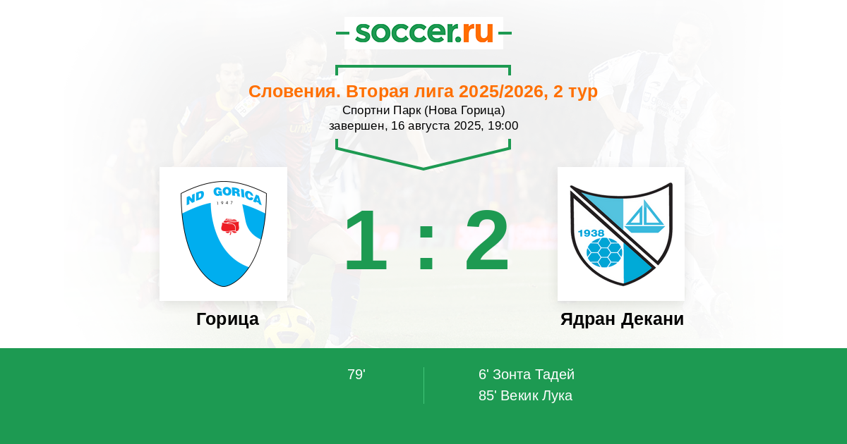Горица - Ядран Декани: обзор матча 16 августа 2025