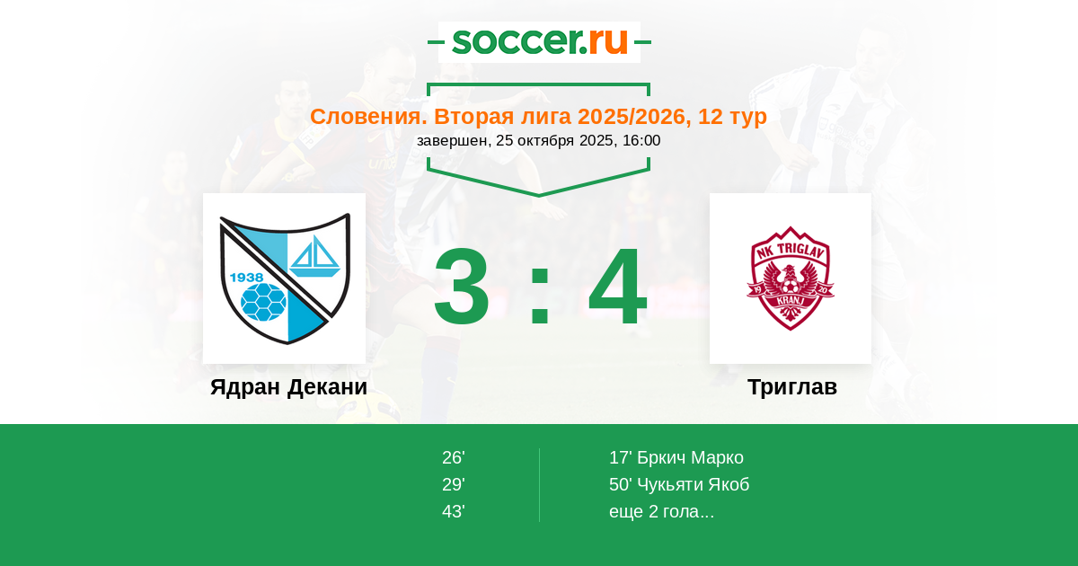 Ядран Декани - Триглав: обзор матча 25 октября 2025