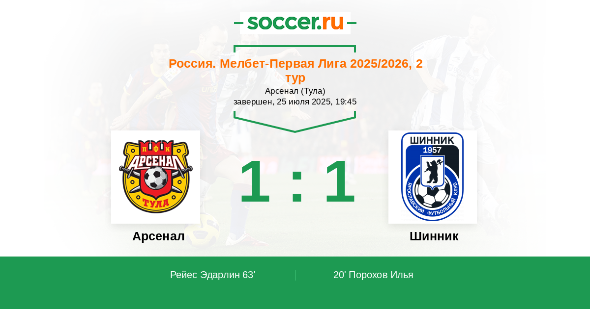 Арсенал - Шинник: обзор матча 25 июля 2025