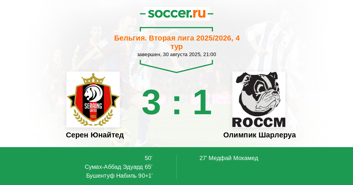 Серен Юнайтед - Олимпик Шарлеруа: обзор матча 30 августа 2025