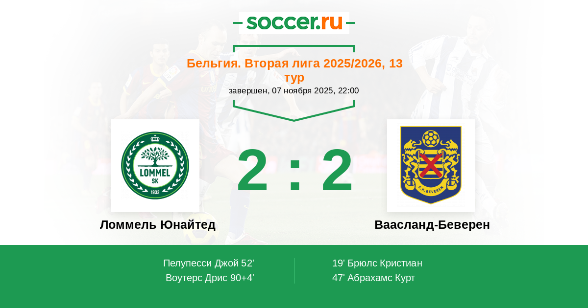 Ломмель Юнайтед - Ваасланд-Беверен: обзор матча 7 ноября 2025