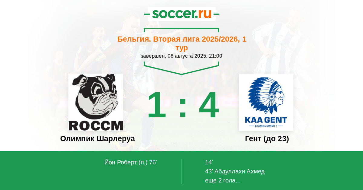 Олимпик Шарлеруа - Гент (до 23): обзор матча 8 августа 2025