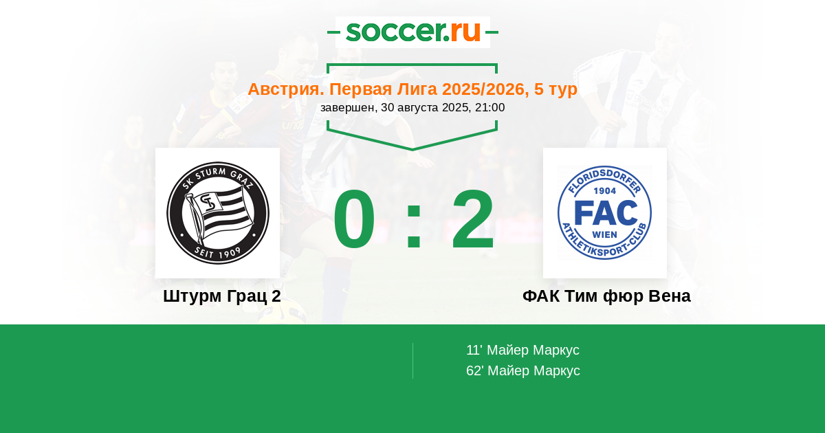 Штурм Грац 2 - ФАК Тим фюр Вена: обзор матча 30 августа 2025