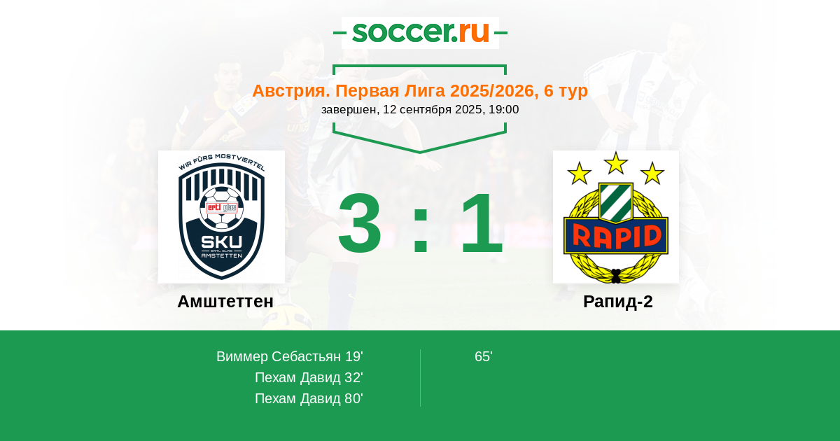 Амштеттен - Рапид-2: обзор матча 12 сентября 2025