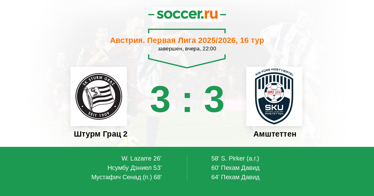 Штурм Грац 2 - Амштеттен: обзор матча 6 декабря 2025