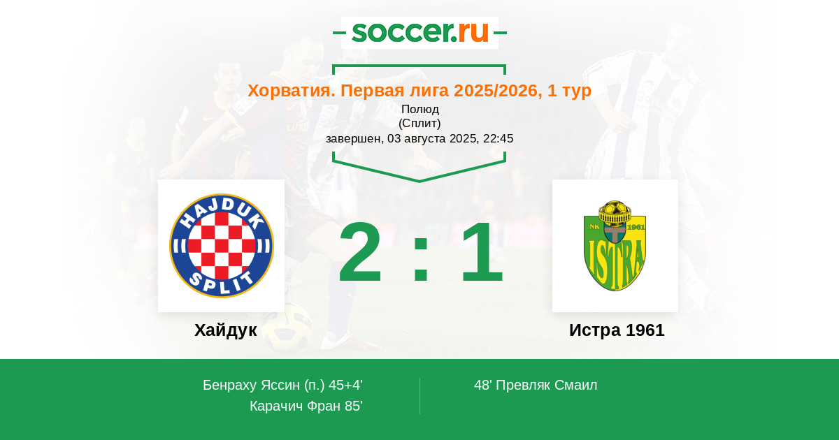 Хайдук - Истра 1961: обзор матча 3 августа 2025