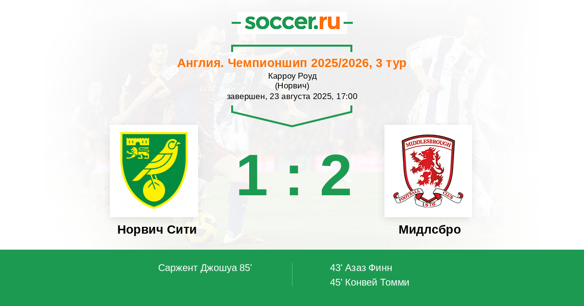 Норвич Сити - Мидлсбро: обзор матча 23 августа 2025
