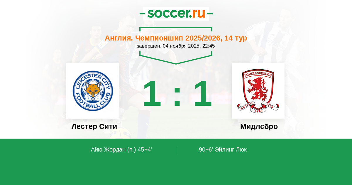 Лестер Сити - Мидлсбро: обзор матча 4 ноября 2025