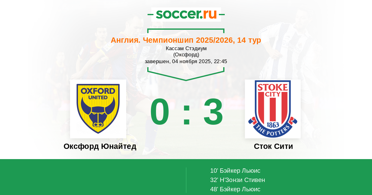 Оксфорд Юнайтед - Сток Сити: обзор матча 4 ноября 2025