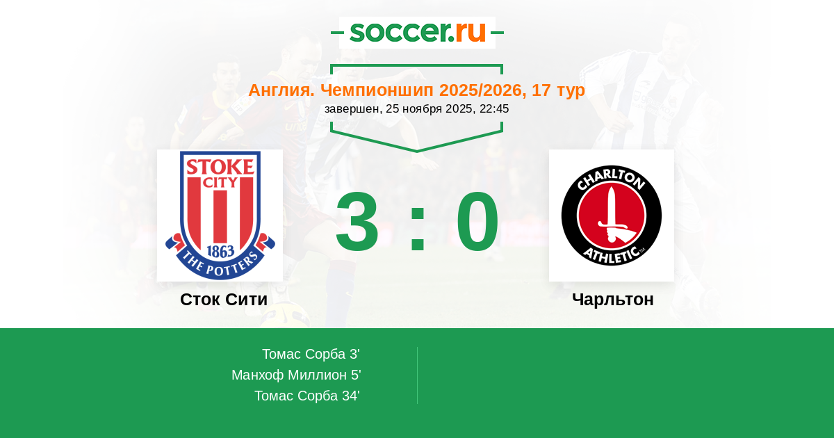Сток Сити - Чарльтон: обзор матча 25 ноября 2025