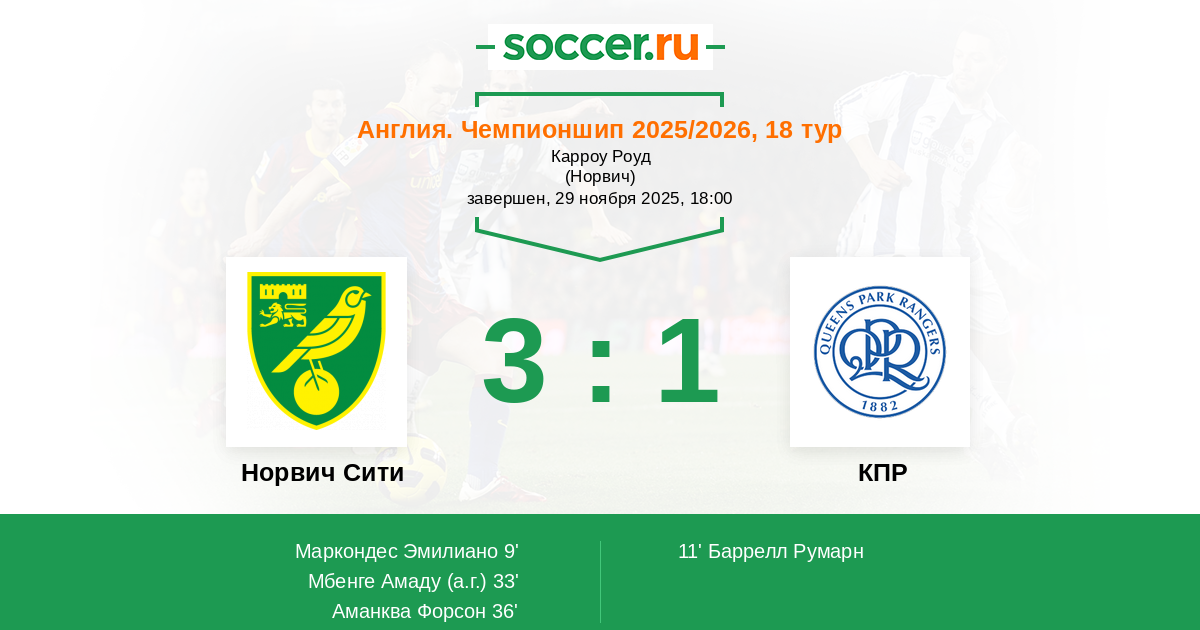 Норвич Сити - КПР: обзор матча 29 ноября 2025