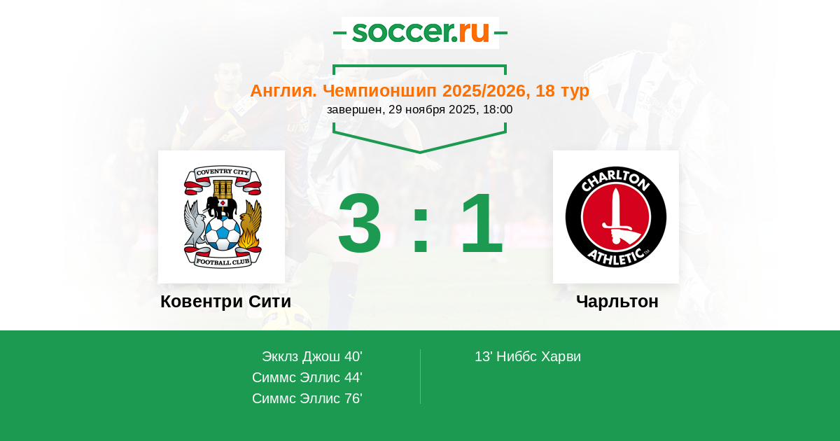 Ковентри Сити - Чарльтон: обзор матча 29 ноября 2025