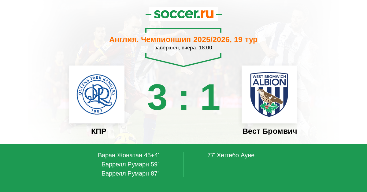 КПР - Вест Бромвич: обзор матча 6 декабря 2025