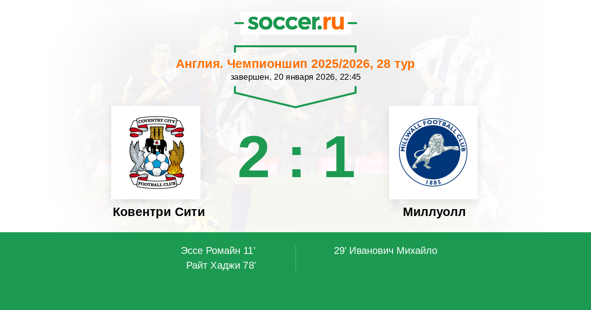 Ковентри Сити - Миллуолл: обзор матча 20 января 2026