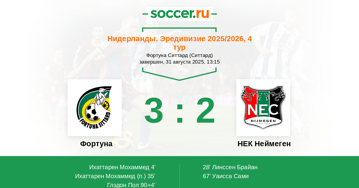 Фортуна - НЕК Неймеген: обзор матча 31 августа 2025