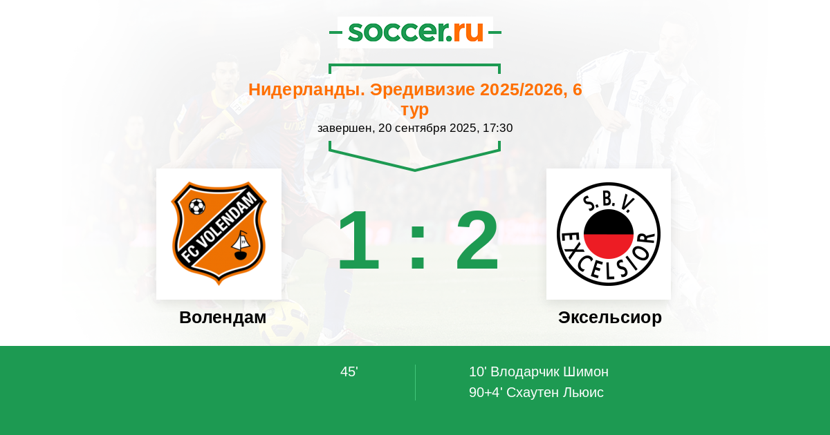 Волендам - Эксельсиор: обзор матча 20 сентября 2025