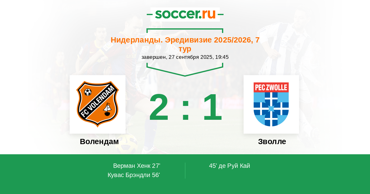 Волендам - Зволле: обзор матча 27 сентября 2025