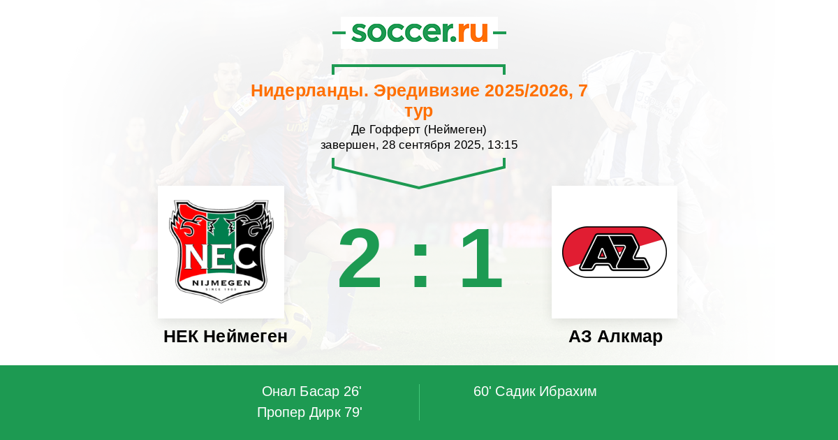 НЕК Неймеген - АЗ Алкмар: обзор матча 28 сентября 2025