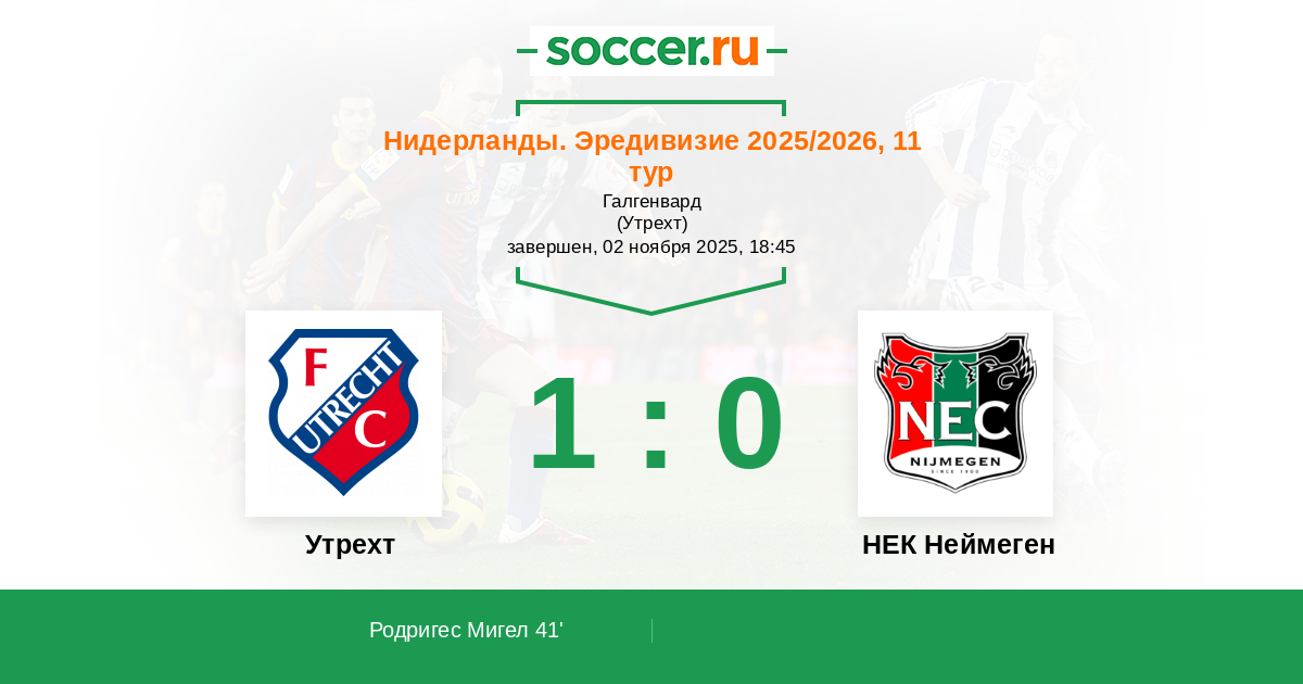 Утрехт - НЕК Неймеген: обзор матча 2 ноября 2025