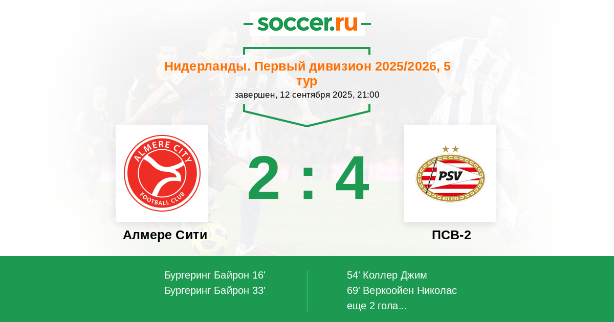 Алмере Сити - ПСВ-2: обзор матча 12 сентября 2025