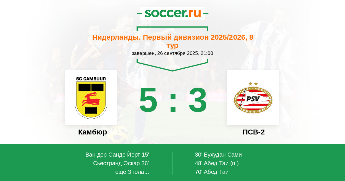 Камбюр - ПСВ-2: обзор матча 26 сентября 2025