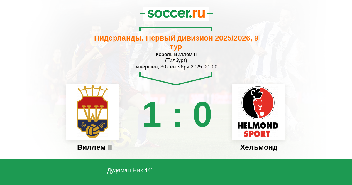 Виллем II - Хельмонд: обзор матча 30 сентября 2025
