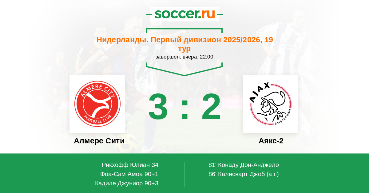 Алмере Сити - Аякс-2: обзор матча 5 декабря 2025