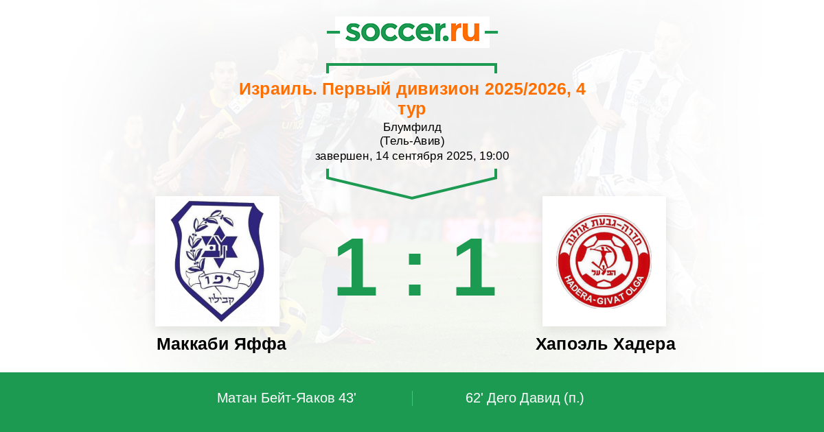 Маккаби Яффа - Хапоэль Хадера: обзор матча 14 сентября 2025