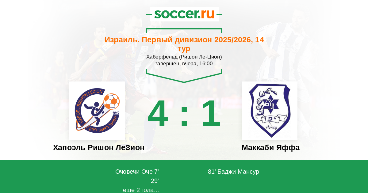 Хапоэль Ришон ЛеЗион - Маккаби Яффа: обзор матча 5 декабря 2025