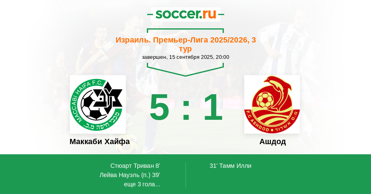 Маккаби Хайфа - Ашдод: обзор матча 15 сентября 2025