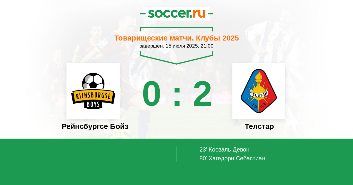 Рейнсбургсе Бойз - Телстар: обзор матча 15 июля 2025