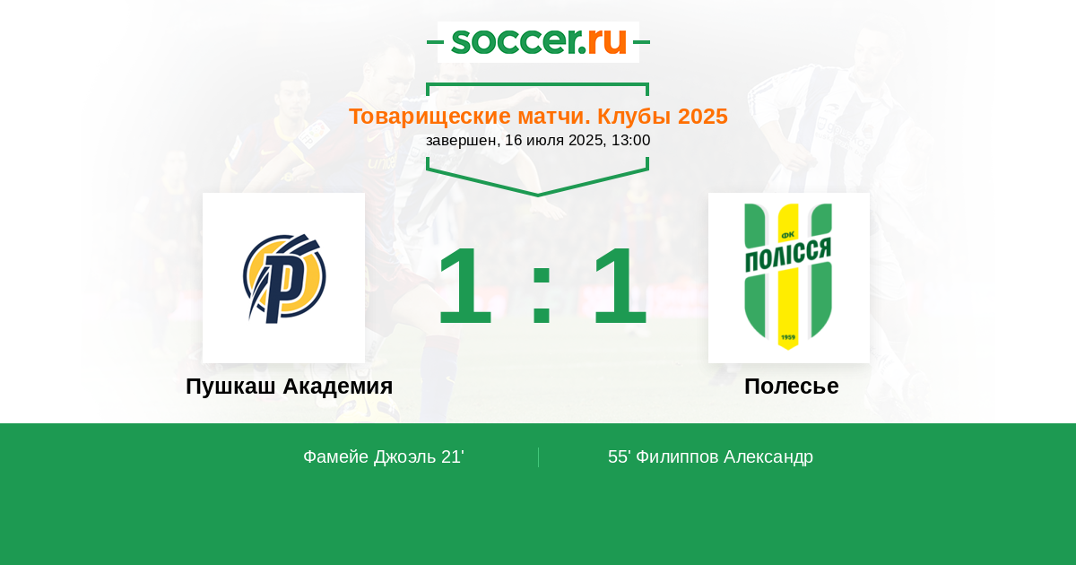 Пушкаш Академия - Полесье: обзор матча 16 июля 2025