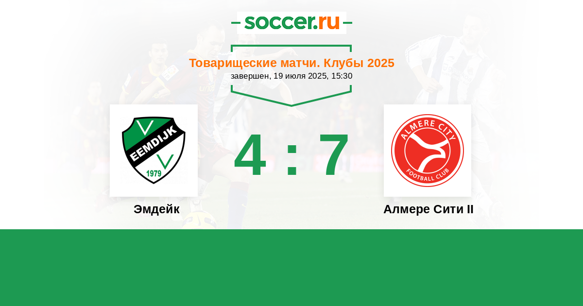 Эмдейк - Алмере Сити II: обзор матча 19 июля 2025