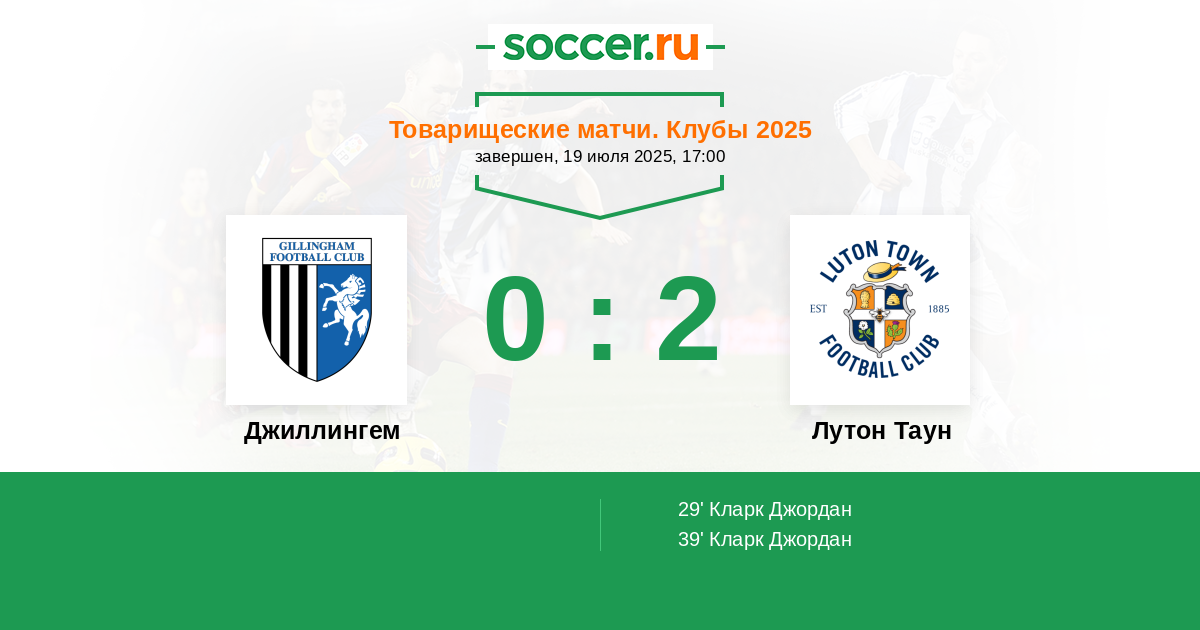 Джиллингем - Лутон Таун: обзор матча 19 июля 2025