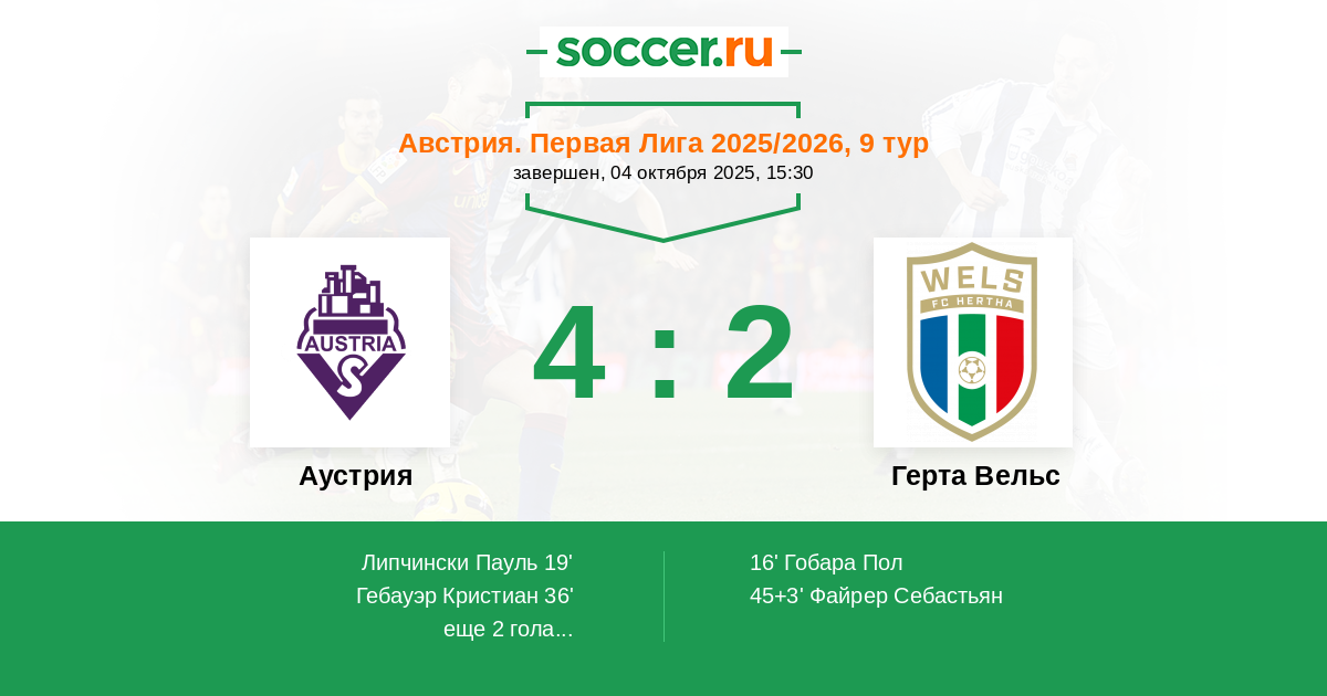 Аустрия - Герта Вельс: обзор матча 4 октября 2025